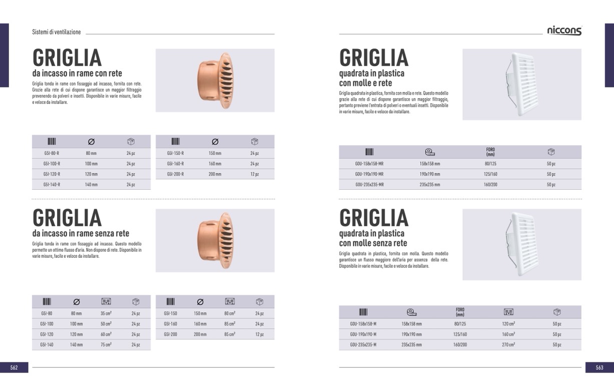 Griglia tonda in rame con fissaggio ad incasso. Questo modello