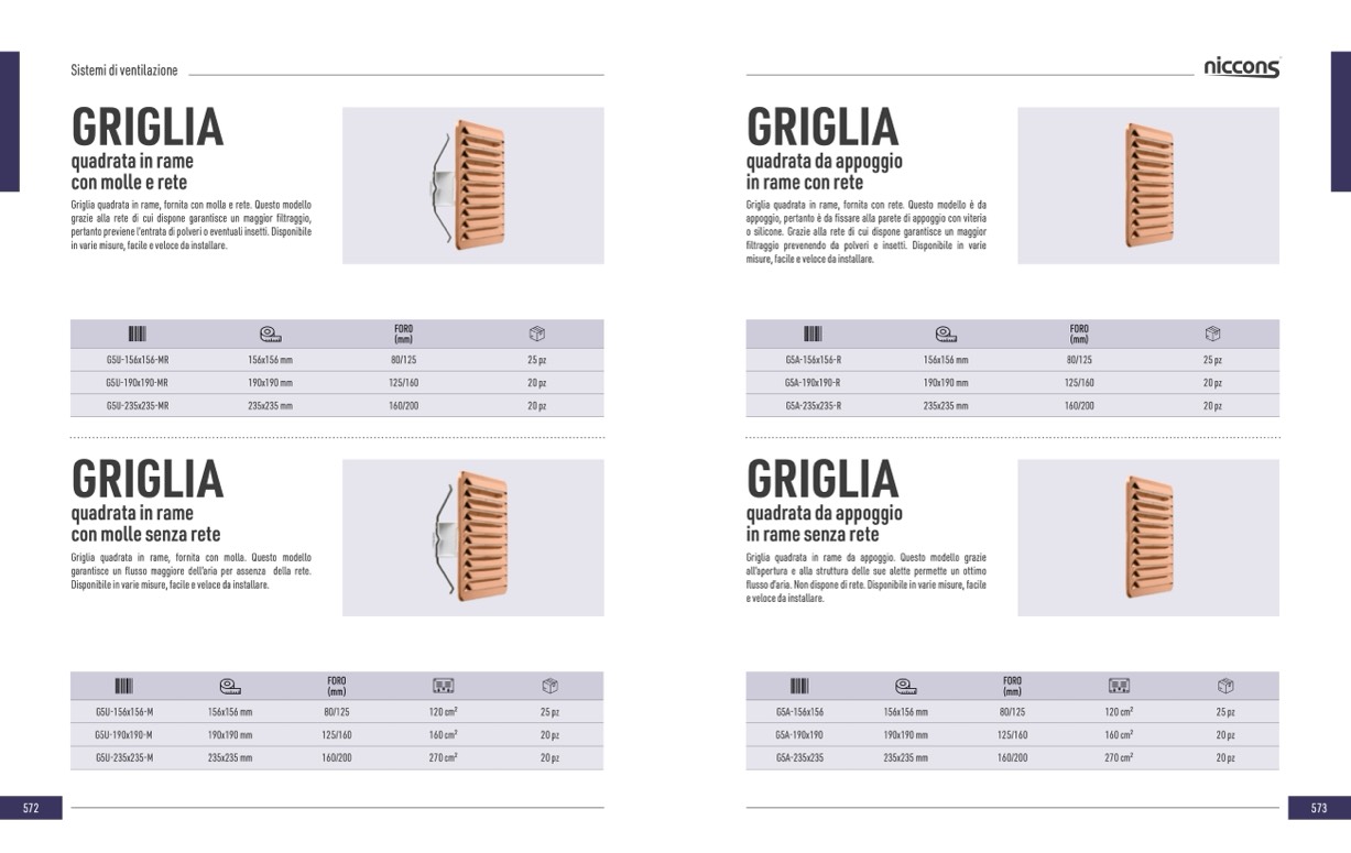 Griglia quadrata in rame, fornita con rete. Questo modello è da
