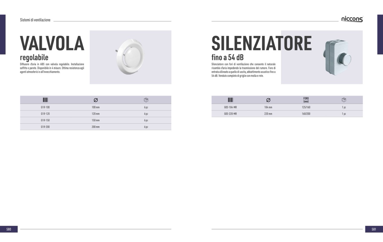 Diffusore d’aria in ABS con valvola regolabile. Installazione