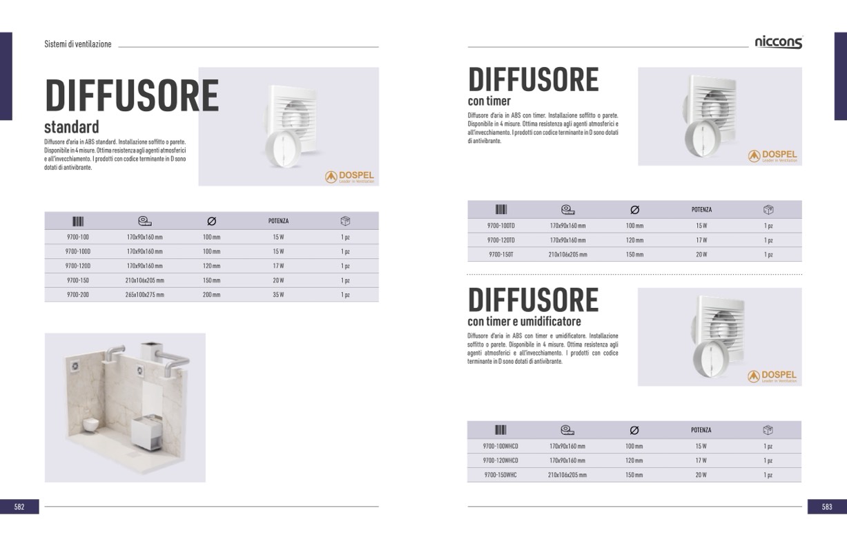 Diffusore d’aria in ABS con timer. Installazione soffitto o parete.