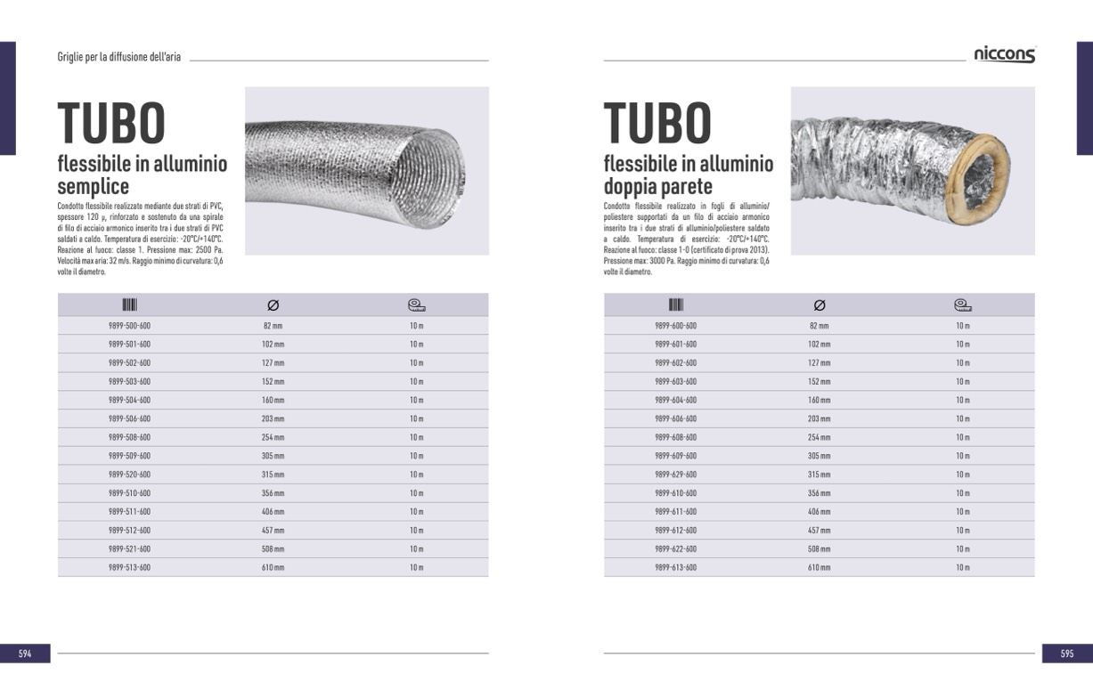 Pressione max: 3000 Pa. Raggio minimo di curvatura: 0,6