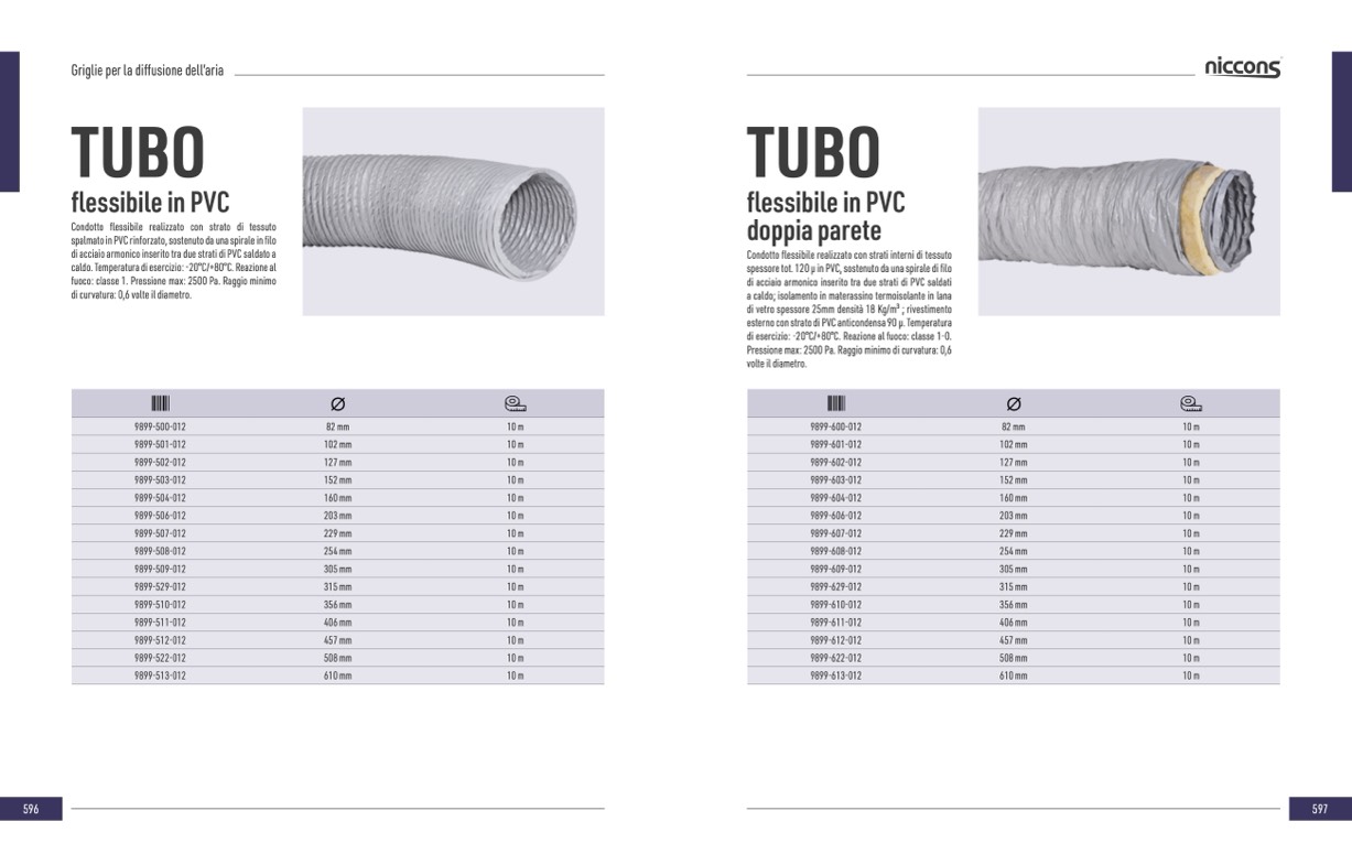 Pressione max: 2500 Pa. Raggio minimo di curvatura: 0,6