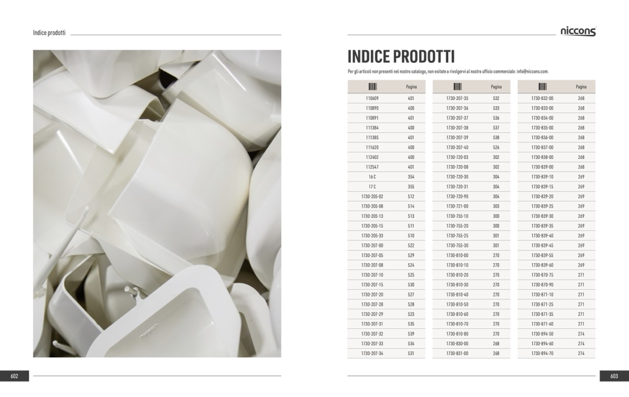Per gli articoli non presenti nel nostro catalogo, non esitate a rivolgervi al nostro ufficio commerciale: info@niccons.com.