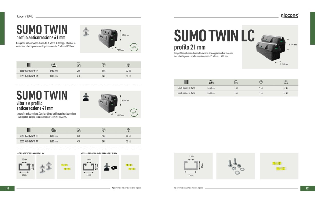 Con profilo anticorrosione. Completo di viteria di fissaggio standard in