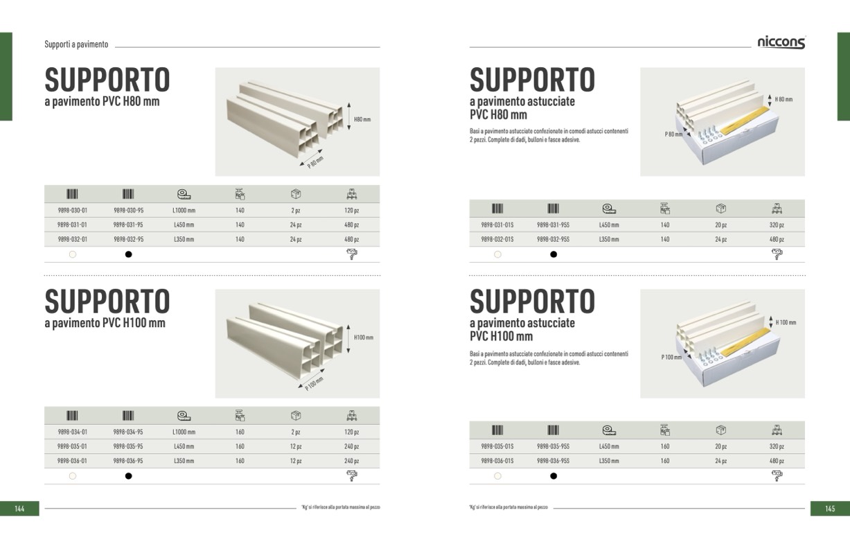 Basi a pavimento astucciate confezionate in comodi astucci contenenti