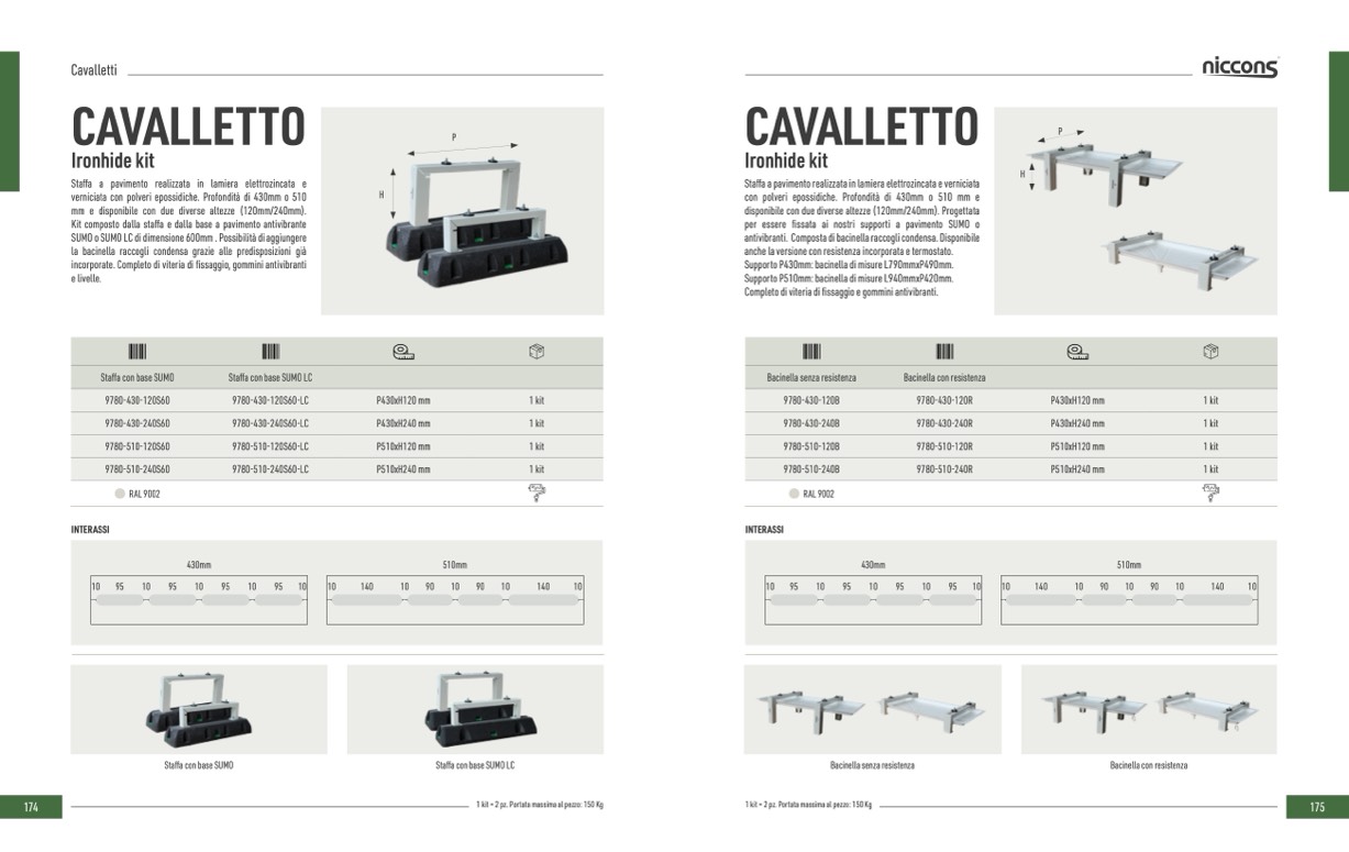 1 kit = 2 pz. Portata massima al pezzo: 150 Kg