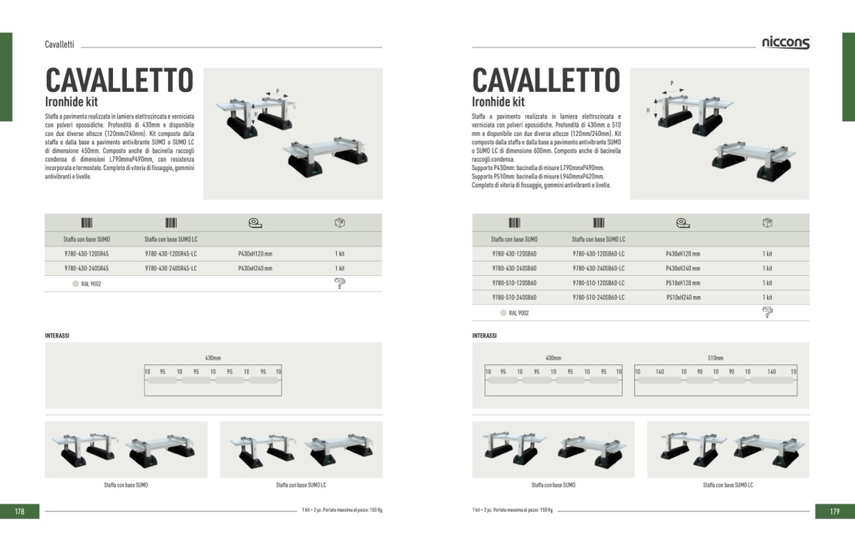 1 kit = 2 pz. Portata massima al pezzo: 150 Kg