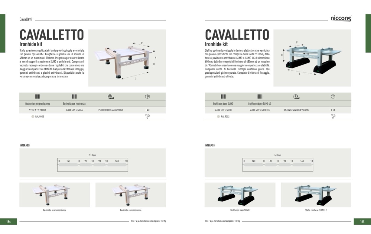 1 kit = 2 pz. Portata massima al pezzo: 150 Kg