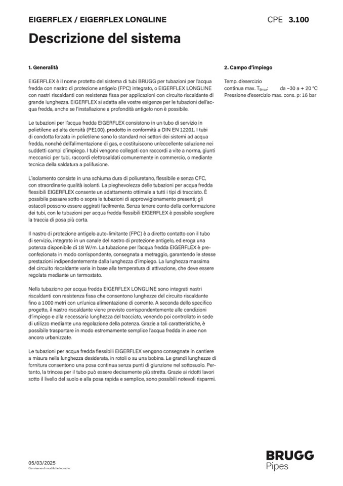 fredda con nastro di protezione antigelo (FPC) integrato, o EIGERFLEX LONGLINE