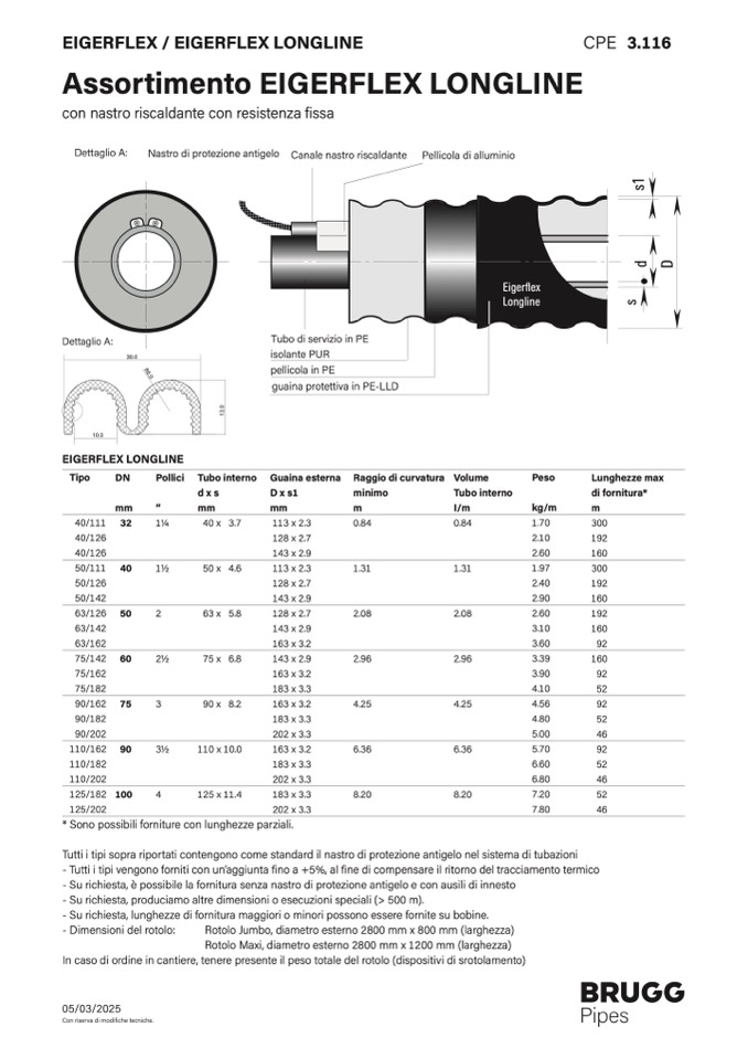 - Su richiesta, lunghezze di fornitura maggiori o minori possono essere fornite su bobine.