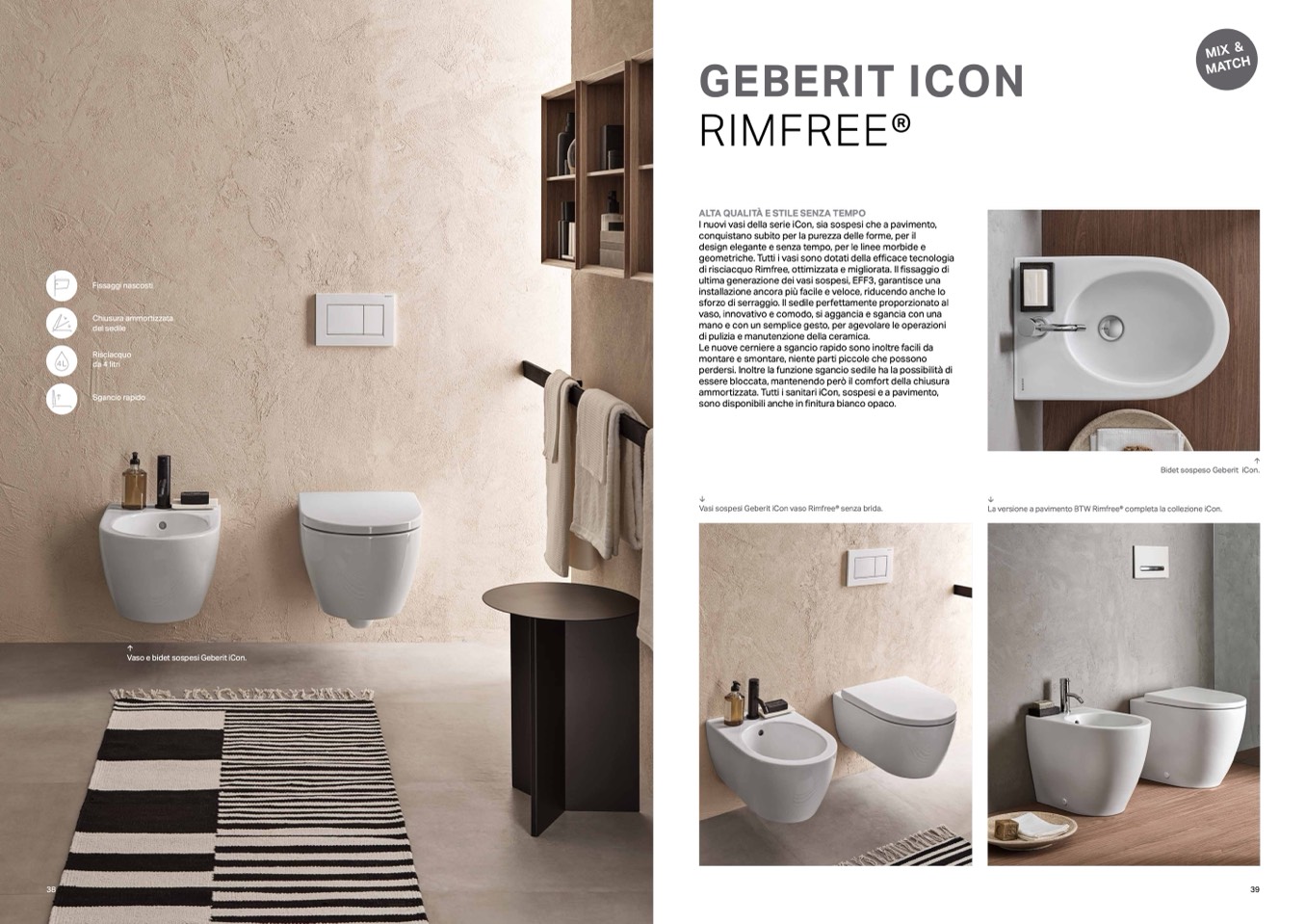 ammortizzata. Tutti i sanitari iCon, sospesi e a pavimento,