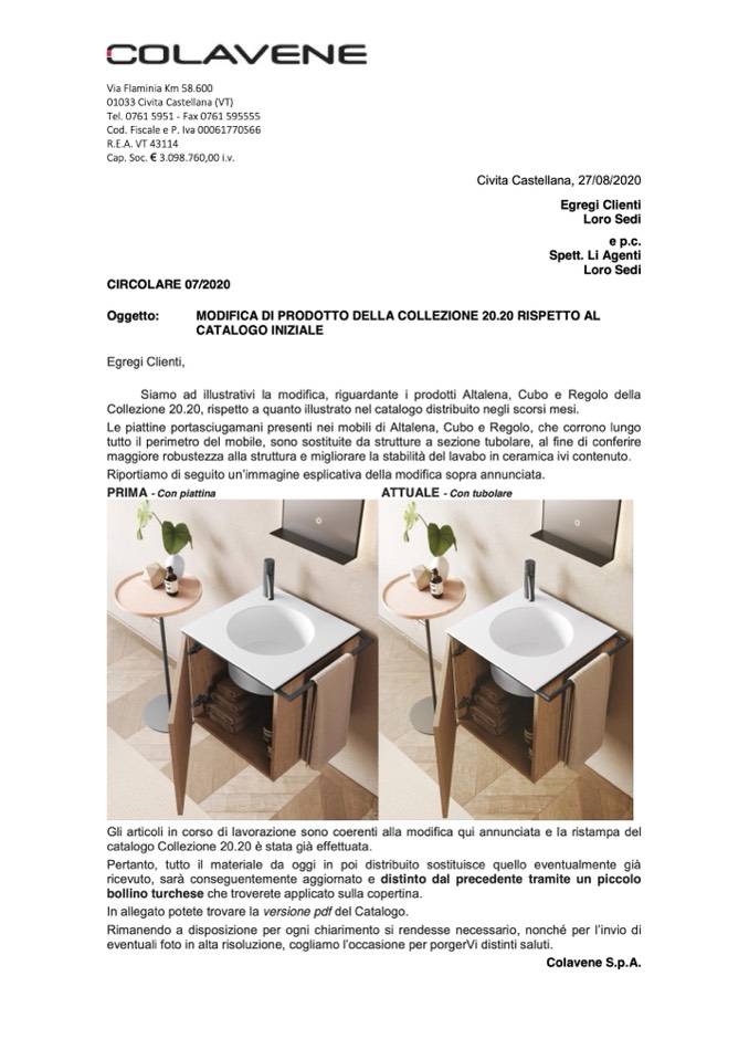 MODIFICA DI PRODOTTO DELLA COLLEZIONE 20.20 RISPETTO AL