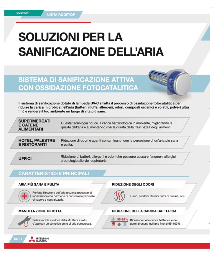 Il sistema di sanificazione dotato di lampada UV-C sfrutta il processo di ossidazione fotocatalitica per