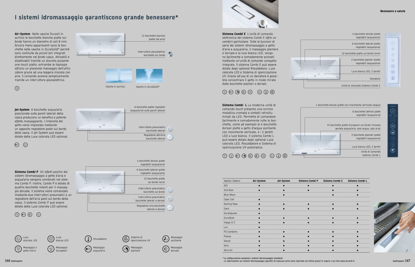 Le informazioni sui sistemi idromassaggio specifici di ciascuna serie sono riportate sul listino prezzi in vigore o sul sito www.duravit.it.