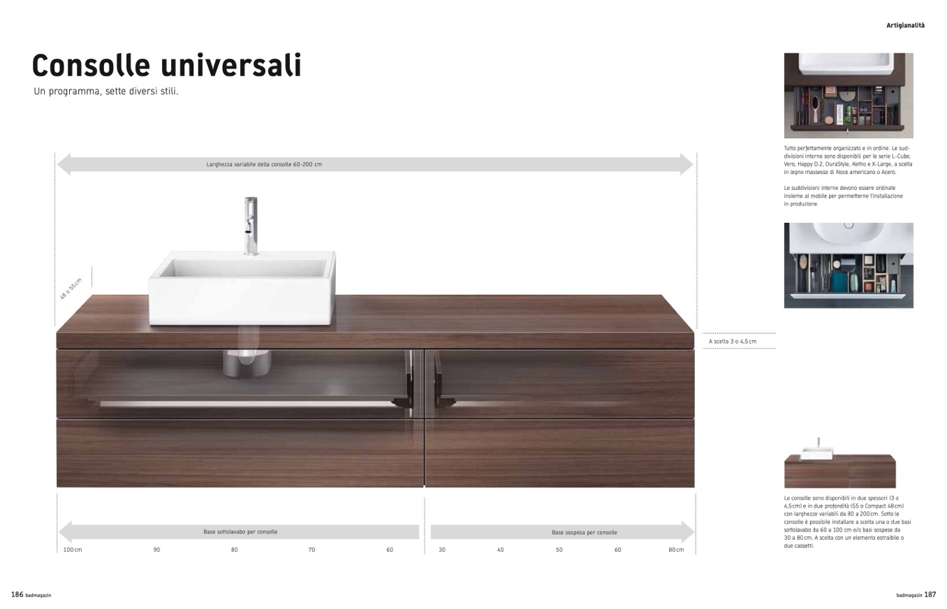 sottolavabo da 60 a 100 cm e/o basi sospese da