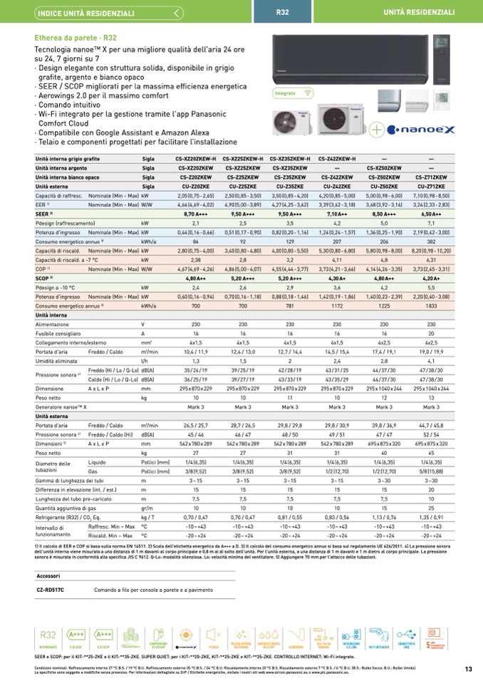Le specifiche sono soggette a modifiche senza preavviso. Per informazioni dettagliate su ErP / Etichette energetiche, visitate i nostri siti web www.aircon.panasonic.eu o www.ptc.panasonic.eu.