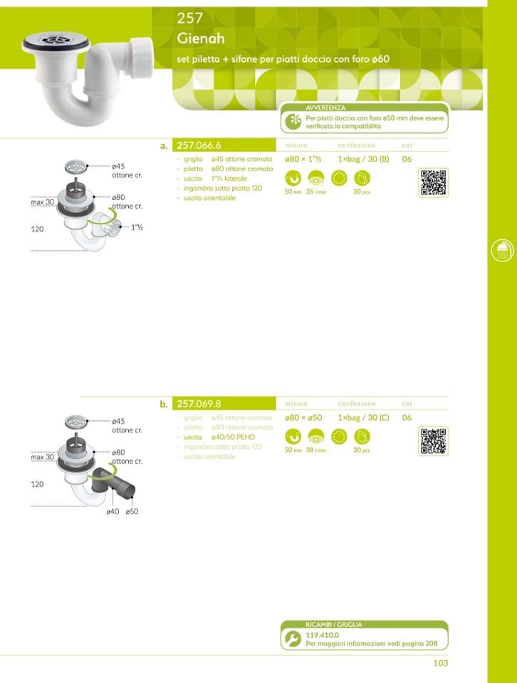 Per piatti doccia con foro ø50 mm deve essere