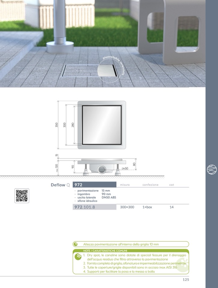 3. Tutte le coperture/griglie disponibili sono in acciaio inox AISI 316