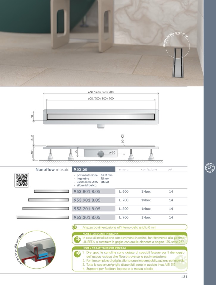 In caso di installazione con pavimenti in resina, far riferimento alla gamma