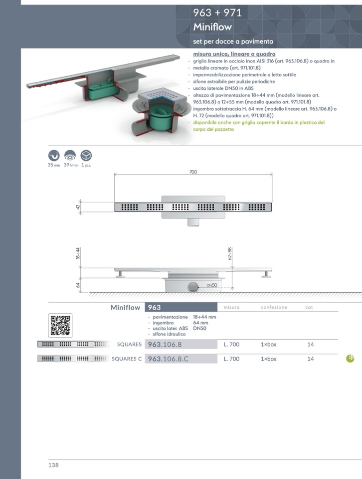 · altezza di pavimentazione 18÷44 mm (modello lineare art.