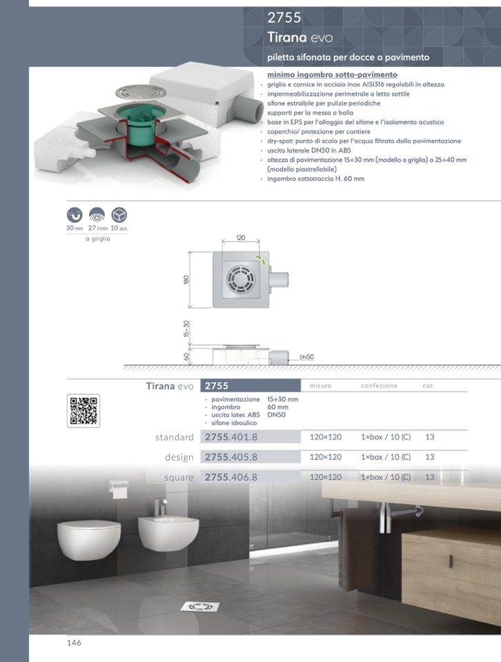 · base in EPS per l’alloggio del sifone e l’isolamento acustico
