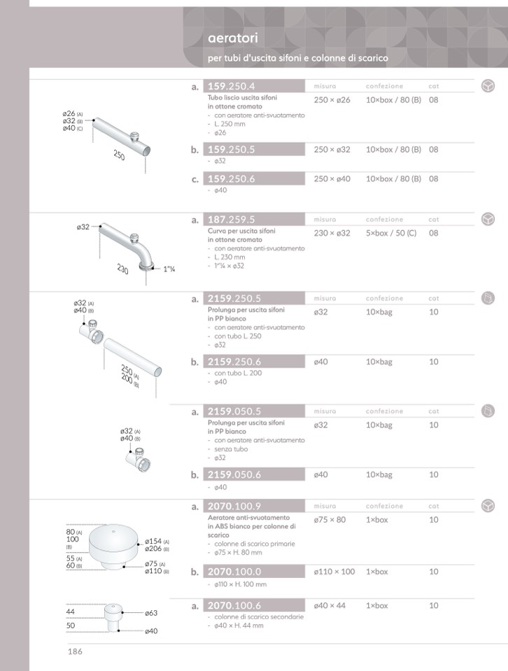- colonne di scarico secondarie