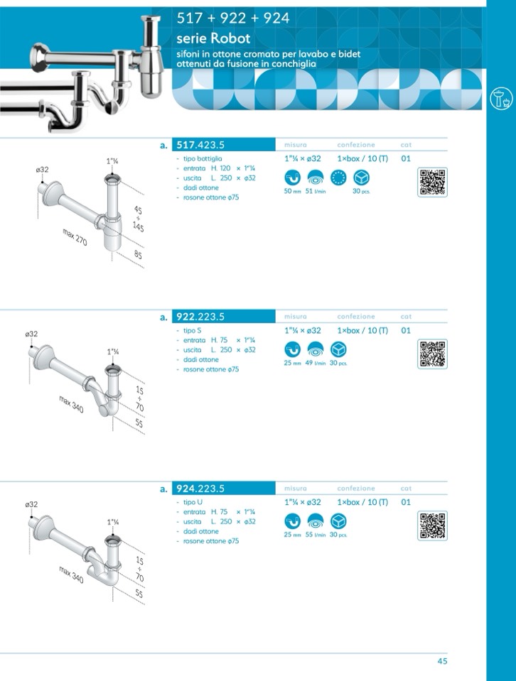 - uscita L. 250 × ø32