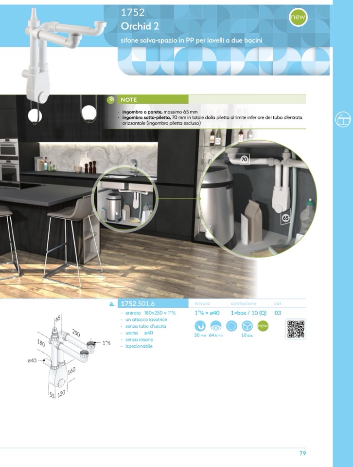 ingombro sotto-piletta, 70 mm in totale dalla piletta al limite inferiore del tubo d’entrata