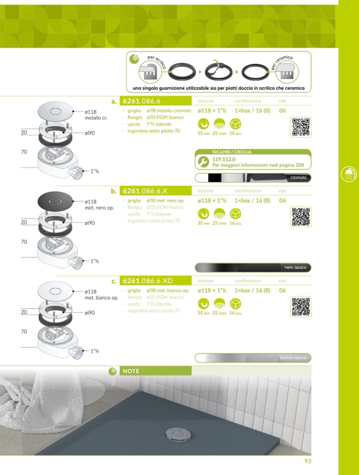 una singola guarnizione utilizzabile sia per piatti doccia in acrilico che ceramica