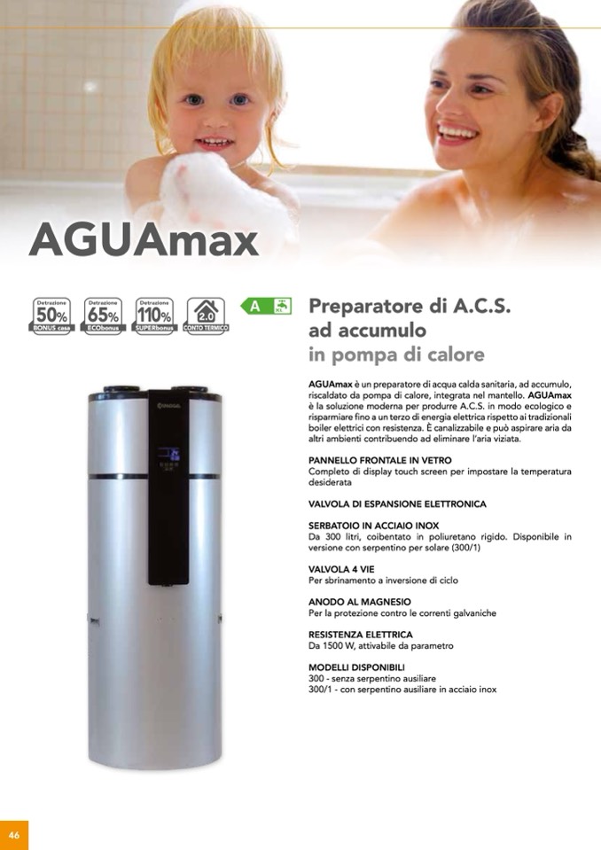 riscaldato da pompa di calore, integrata nel mantello. AGUAmax