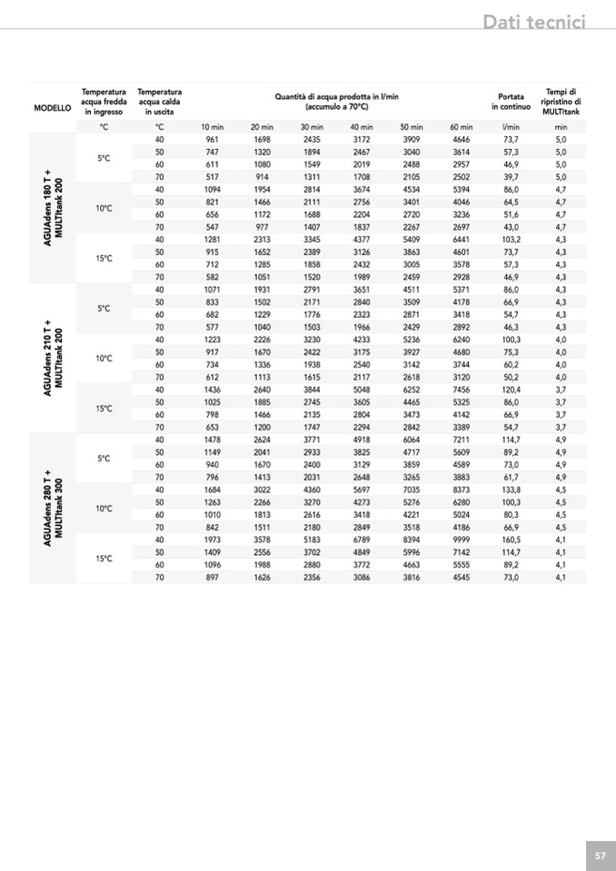 Quantità di acqua prodotta in l/min