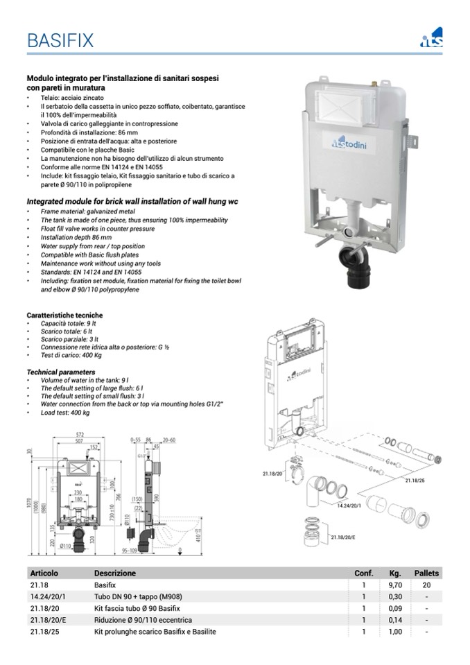 Include: kit fissaggio telaio, Kit fissaggio sanitario e tubo di scarico a