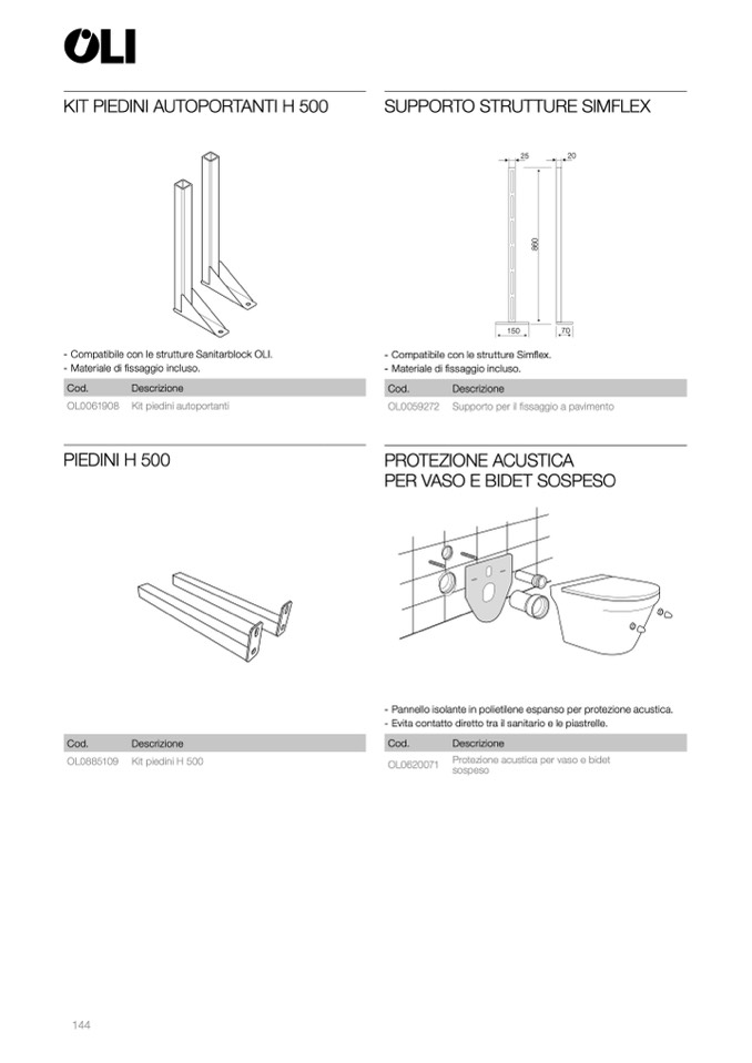 - Compatibile con le strutture Sanitarblock OLI.