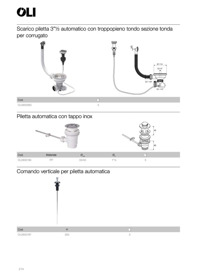 Scarico piletta 3”1⁄2 automatico con troppopieno tondo sezione tonda