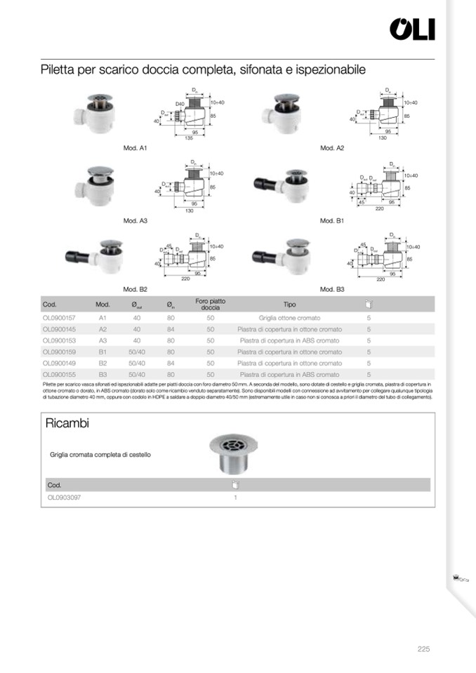 Pilette per scarico vasca sifonati ed ispezionabili adatte per piatti doccia con foro diametro 50 mm. A seconda del modello, sono dotate di cestello e griglia cromata, piastra di copertura in