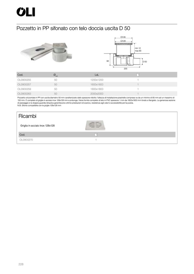 N.B. Sifone compatibile con le griglie 128x128 mm