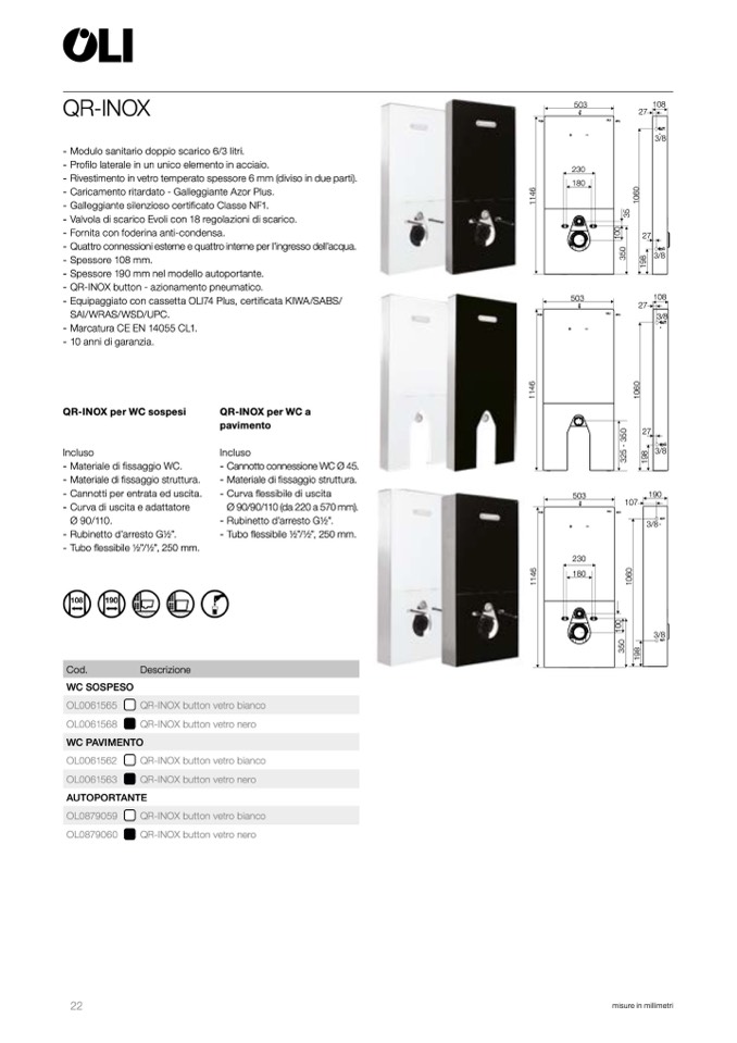 - Equipaggiato con cassetta OLI74 Plus, certificata KIWA/SABS/