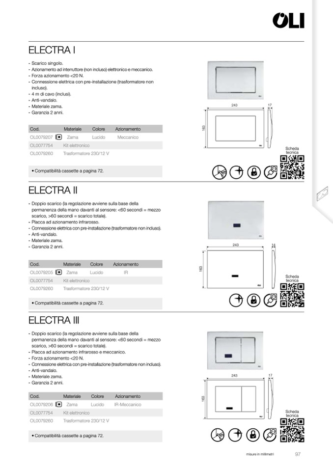 - Placca ad azionamento infrarosso e meccanico.