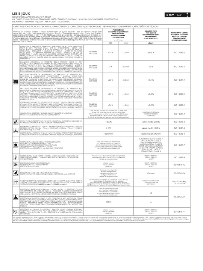 CARATTERISTICHE TECNICHE - TECHNICAL CHARACTERISTICS - CARACTERISTIQUES TECHNIQUES - TECHNISCHE EIGENSCHAFTEN - CARACTERÍSTICAS TÉCNICAS