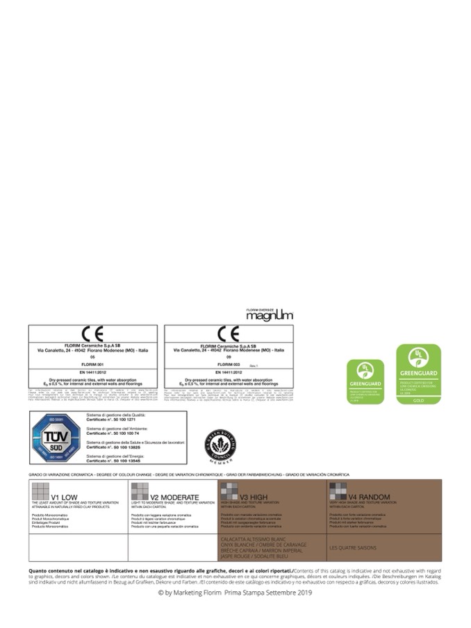 Per informazioni relative ai dati tecnici su marcatura CE vedere il sito www.florim.co