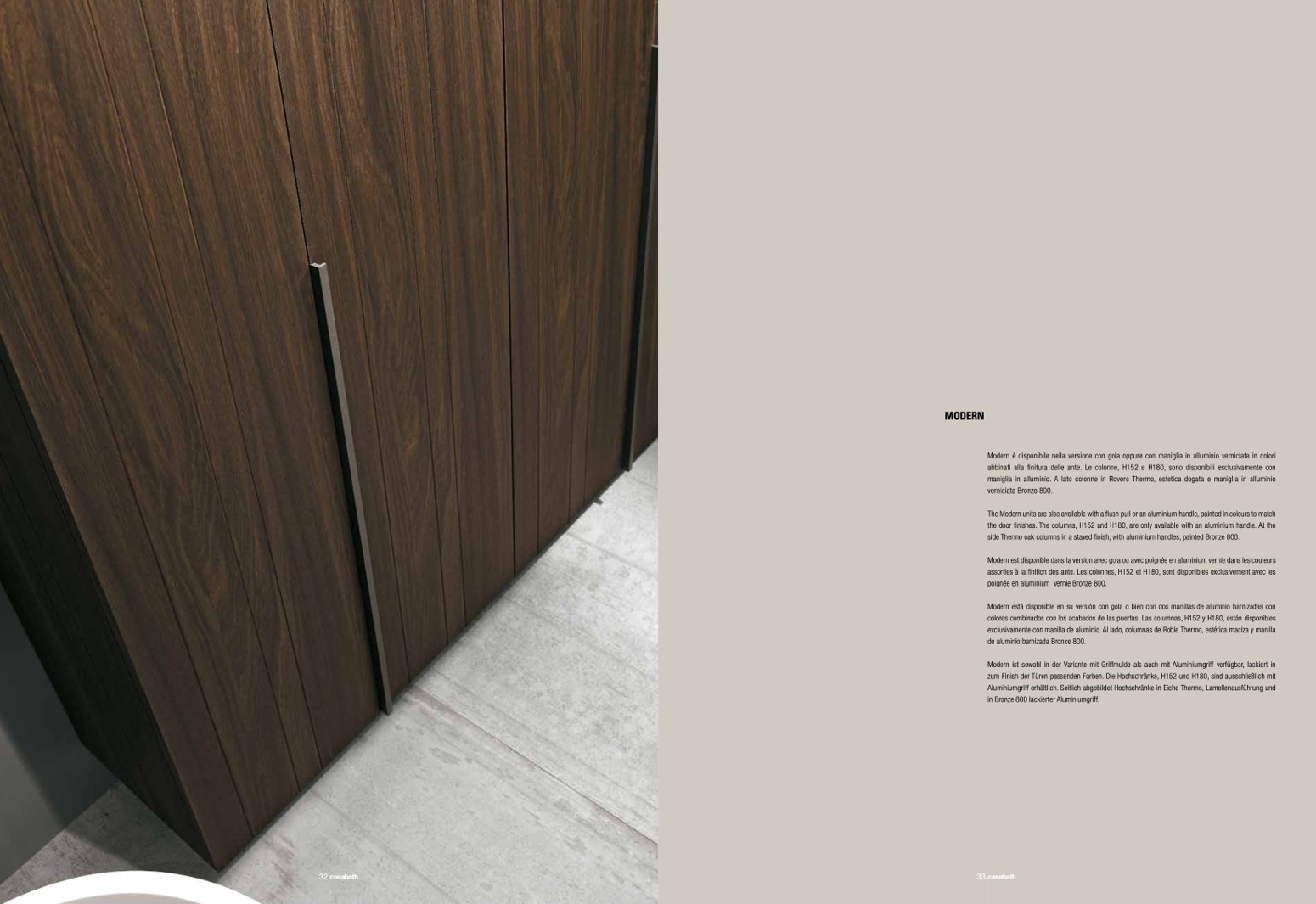 the door finishes. The columns, H152 and H180, are only available with an aluminium handle. At the