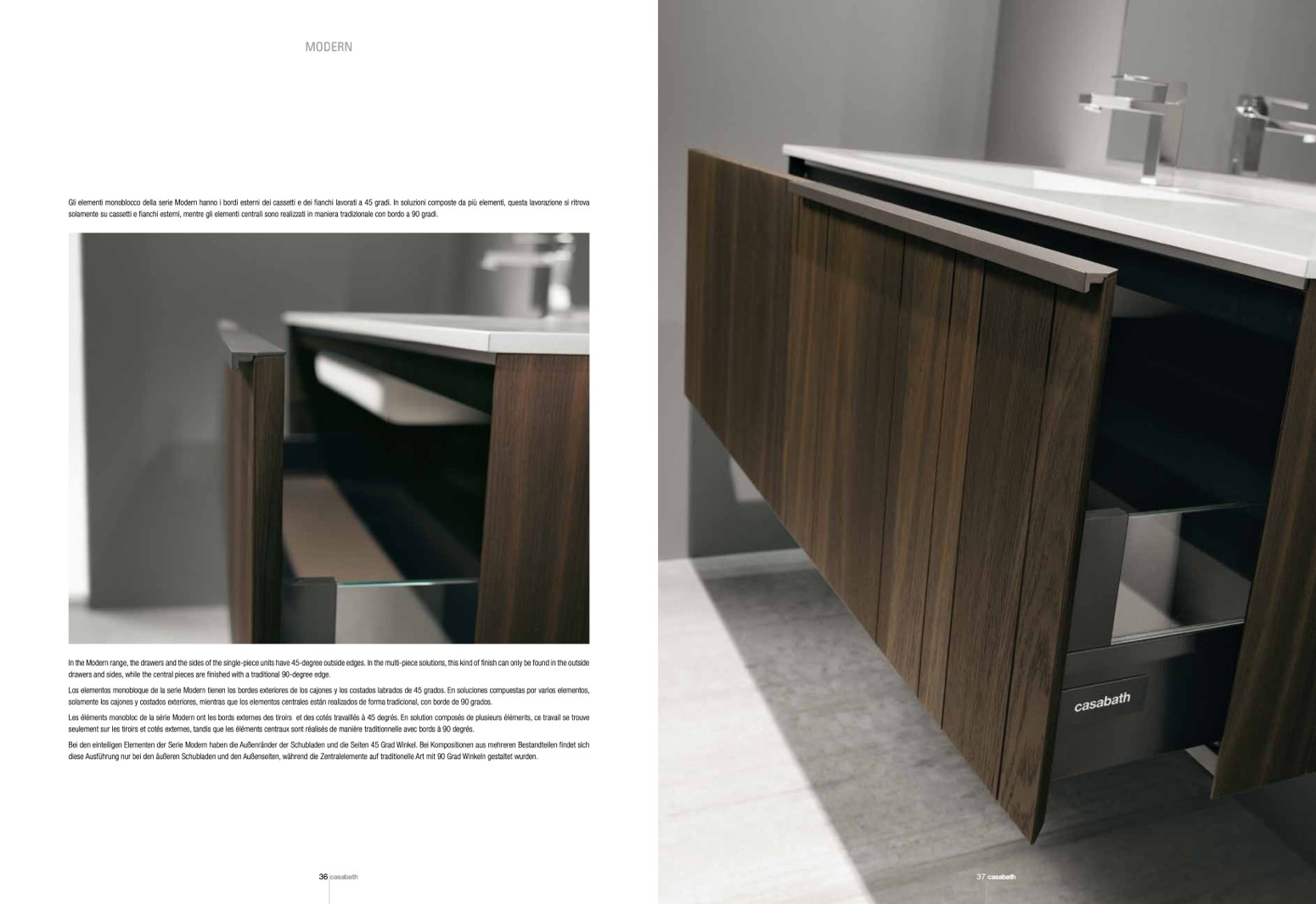 Bei den einteiligen Elementen der Serie Modern haben die Außenränder der Schubladen und die Seiten 45 Grad Winkel. Bei Kompositionen aus mehreren Bestandteilen findet sich