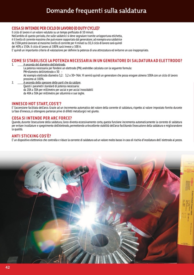 Ad esempio elettrodo diametro 3,2: 3,2 x 30= 96A. Vi servirà quindi un generatore che possa erogare almeno 100A con un ciclo di lavoro