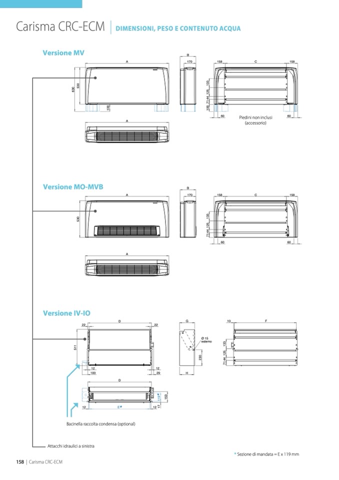 * Sezione di mandata = E x 119 mm
