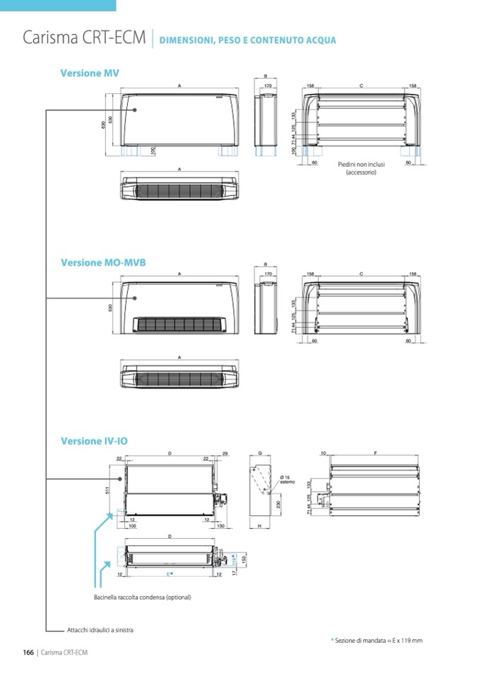 * Sezione di mandata = E x 119 mm