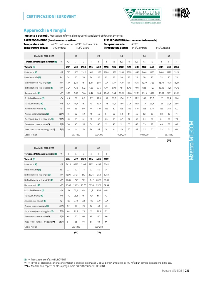 (E) = Prestazioni certificate EUROVENT.