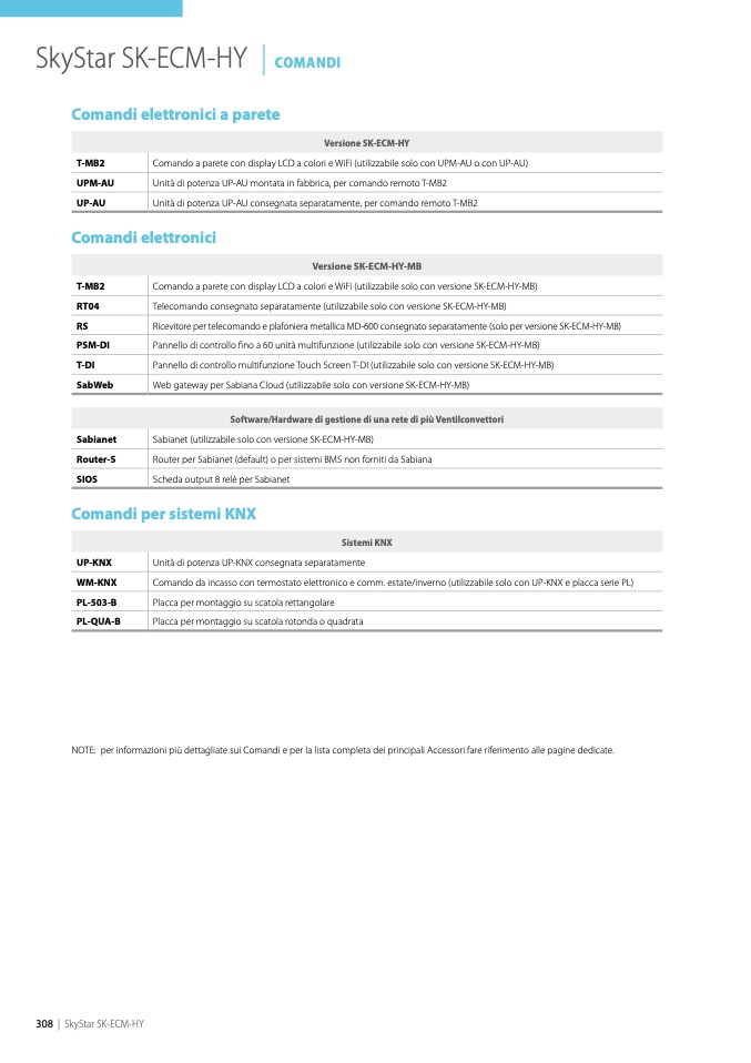 ù dettagliate sui Comandi e per la lista completa dei principali Accessori fare riferimento alle pagine dedicate.