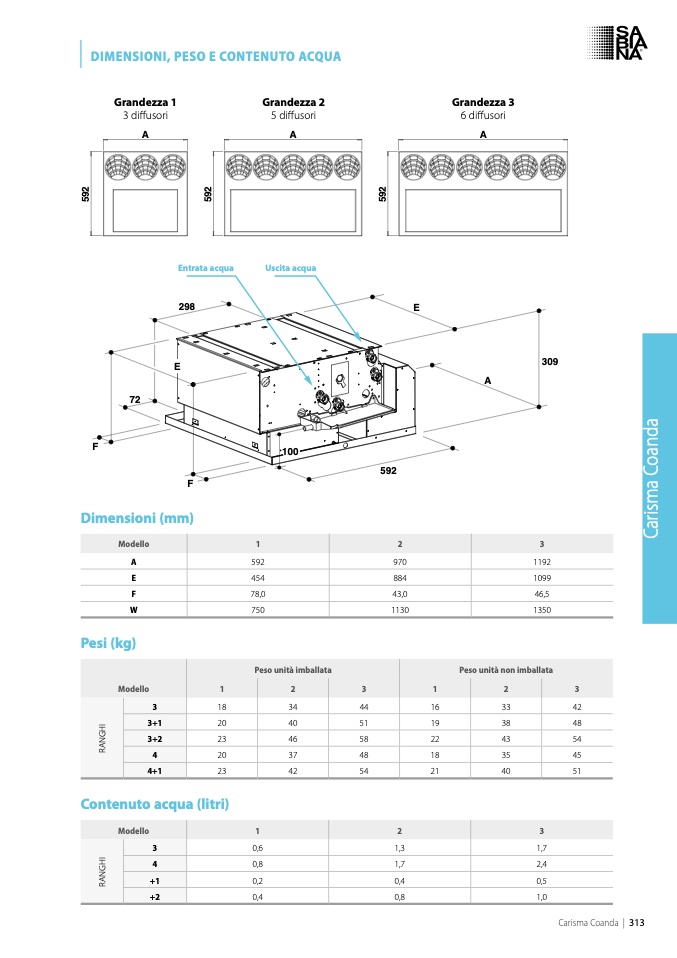 DIMENSIONI, PESO E CONTENUTO ACQUA