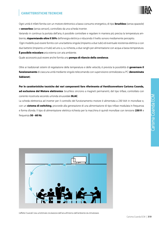 L’effetto “coanda” crea un’ottimale circolazione dell’aria all’interno dell’ambiente da climatizzare.