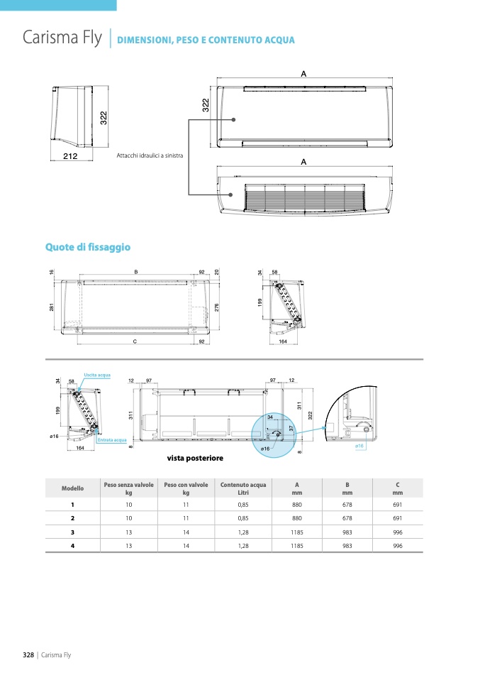 DIMENSIONI, PESO E CONTENUTO ACQUA